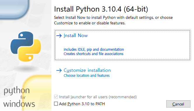 python-3.10.4-amd64.exe 파일을 실행합니다.