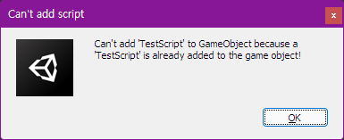 DisallowMultipleComponent는 MonoBehavior를 상속하는 동일한 클래스 또는 자식 클래스 스크립트를 하나의 GameObject에 두 개 이상 추가되지 않도록 하는 속성입니다.