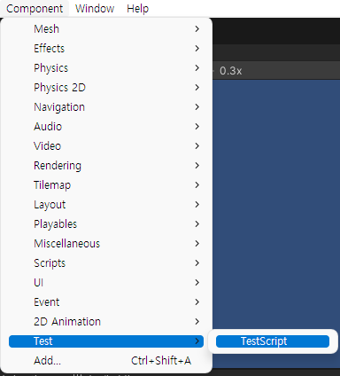 이를 통해 [Component 메뉴]를 더 직관적으로 구성할 수 있으며, 스크립트를 추가할 때 작업 속도가 향상됩니다.